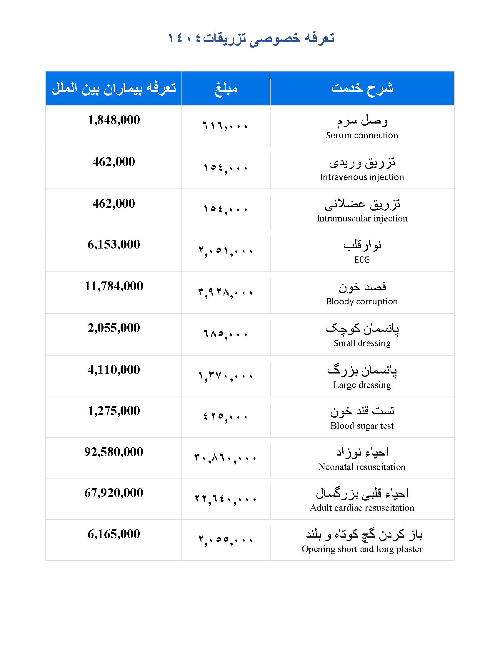 • مشاهده لیست تعرفه های خدمات درمانگاه ◄