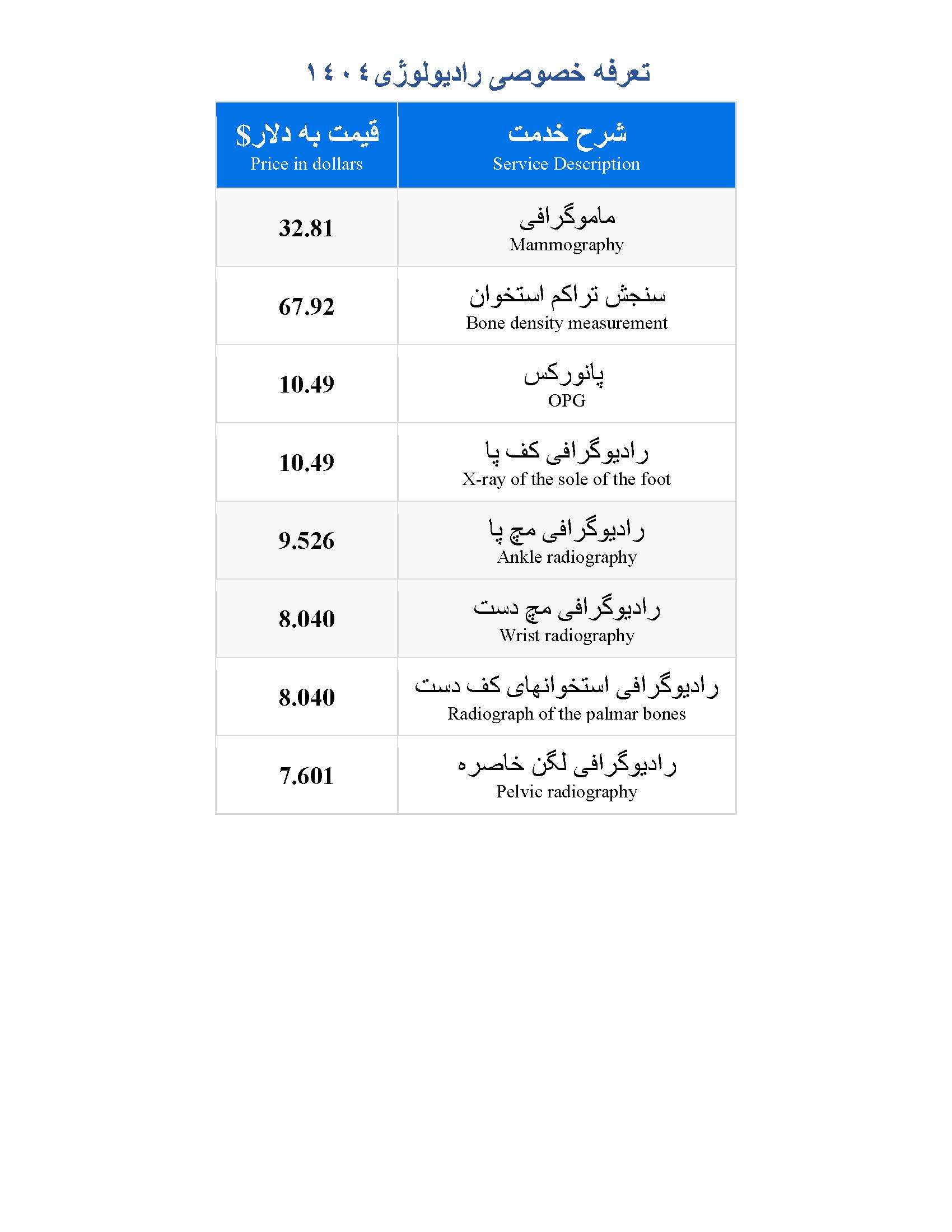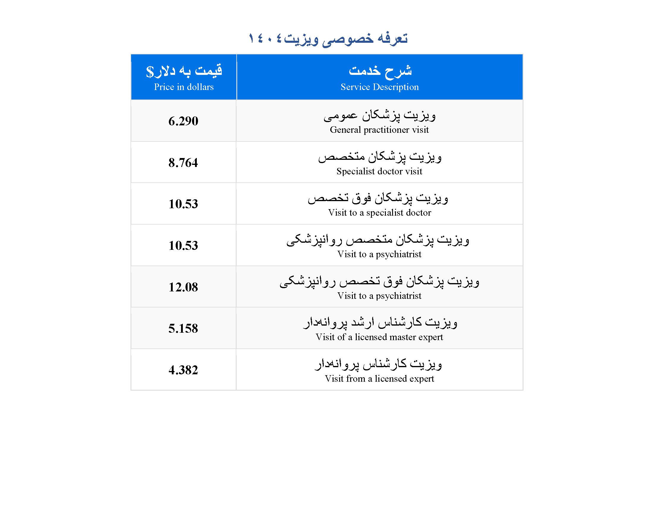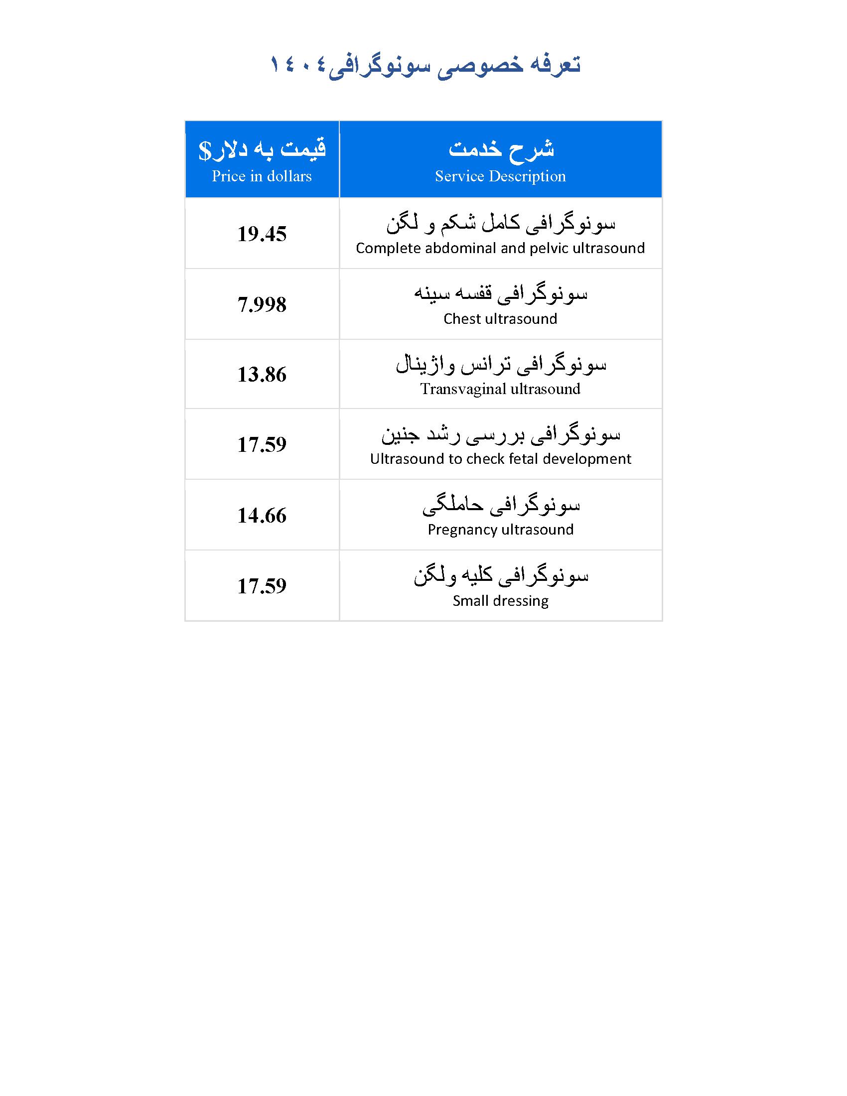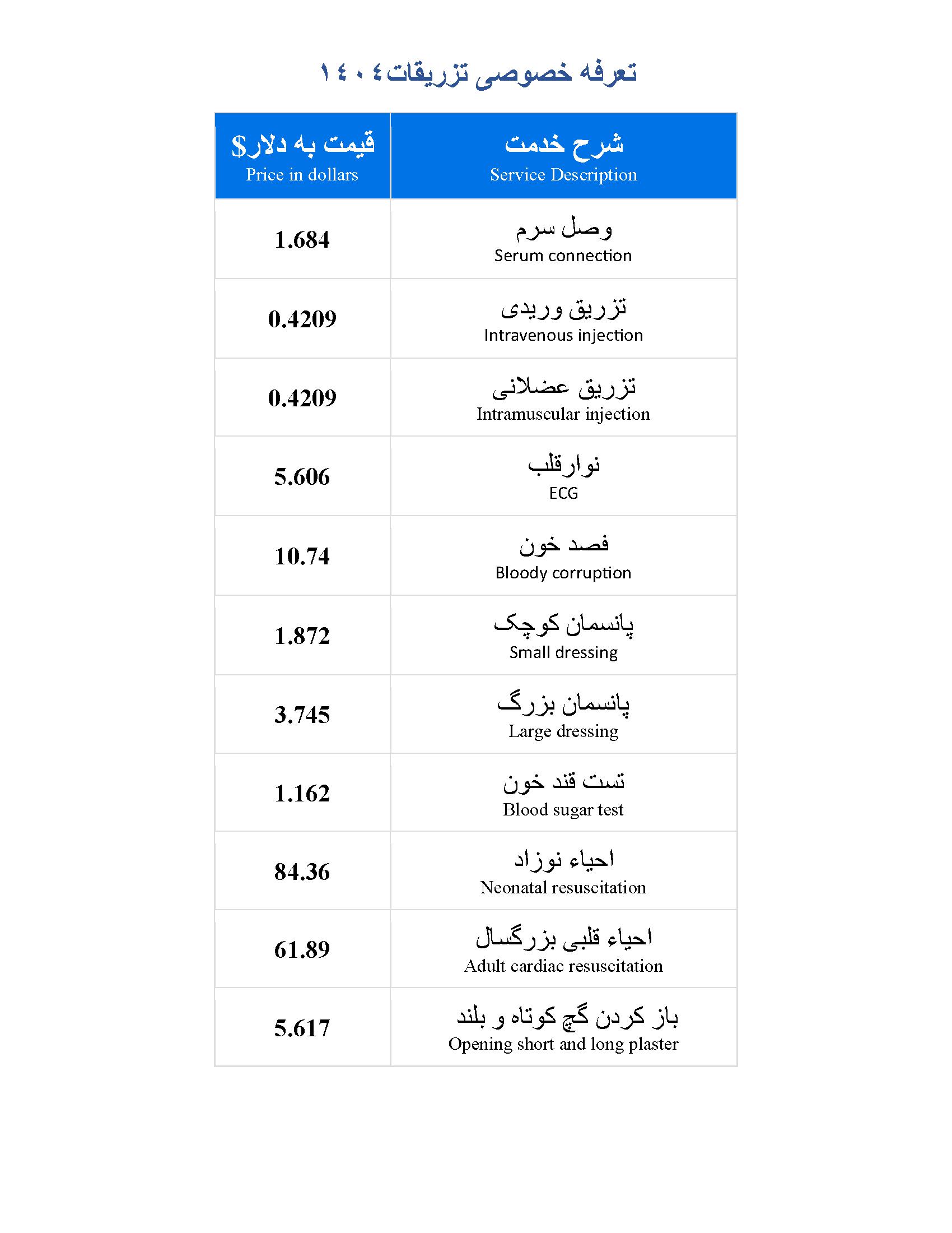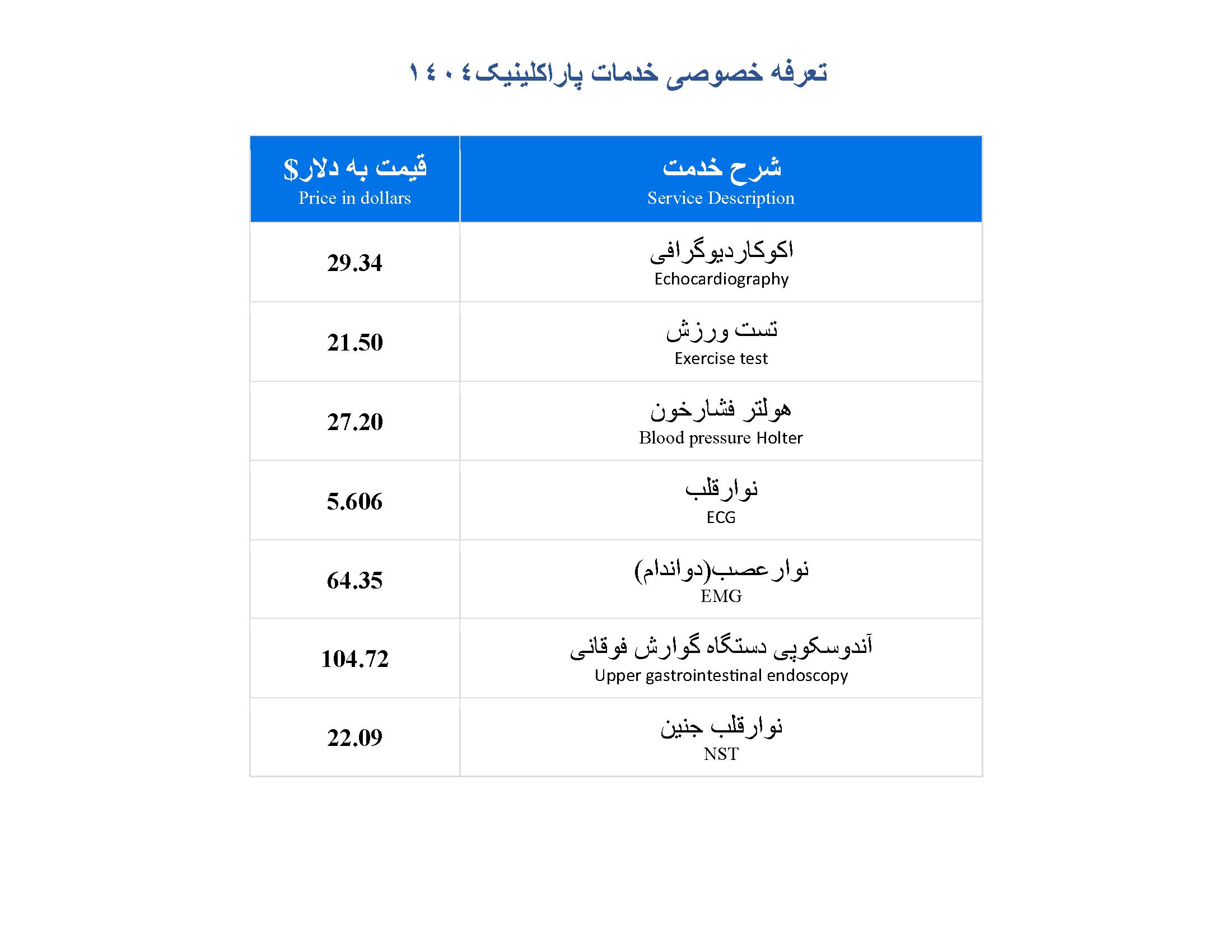 • لیست تعرفه های خدمات درمانگاه